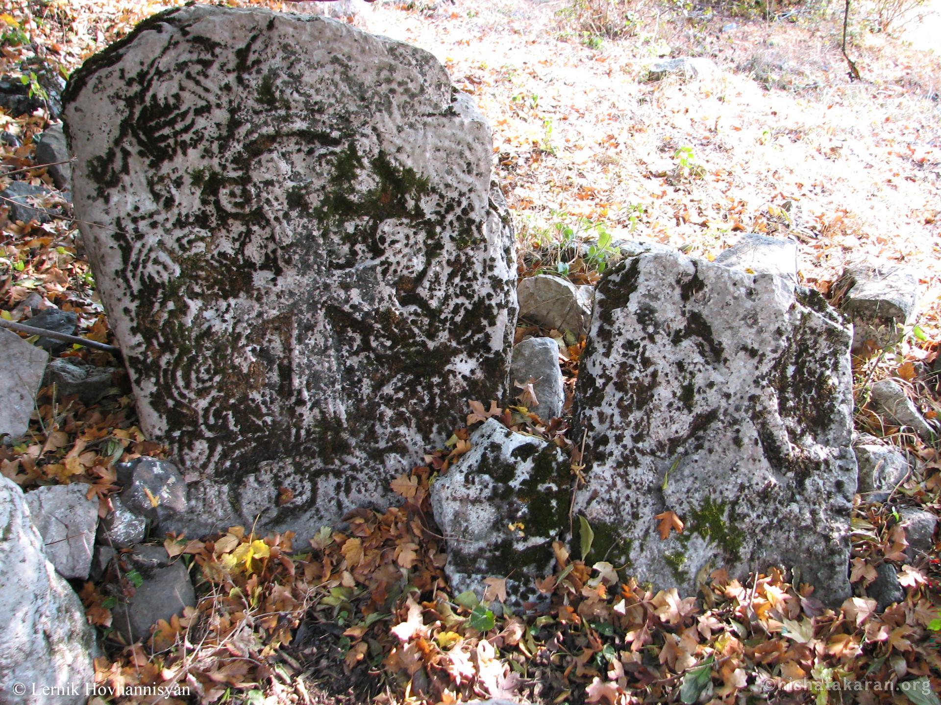 The monument originally belonged to the medieval cemetery known as "Khach" (Karmir Avetaran) near the settlement of Karmir Kerts1 in the Karakhan area of historical Artsakh. The name of conservation unit