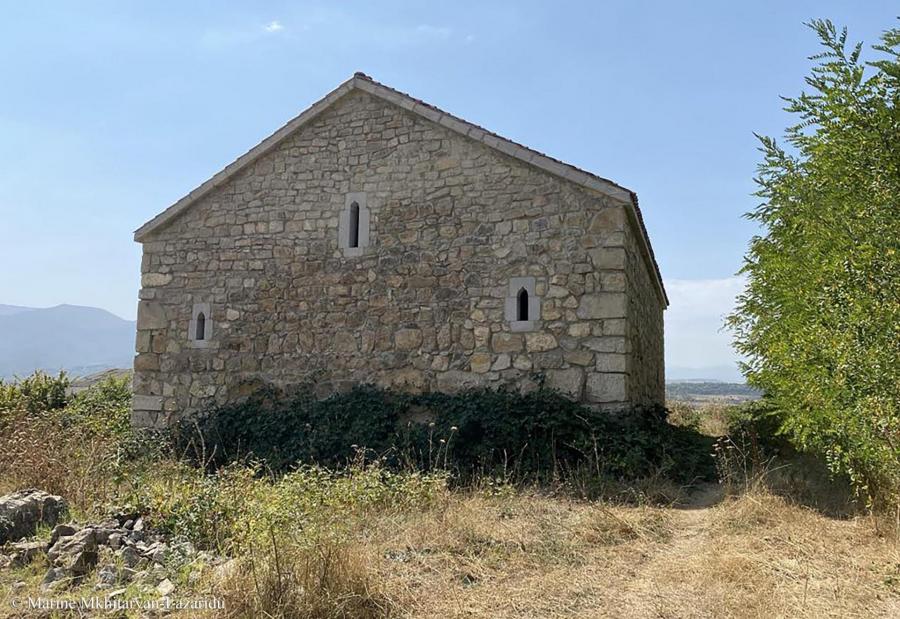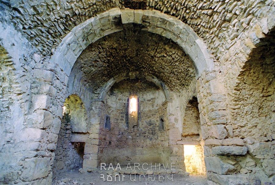 According to preserved information about the Pirumashen settlement and church: “In the 16th century, when the Turkish invaders entered Karabakh, they gathered the inhabitants of Pirumashen, locked them in the church, and burned it.”3 Another source confirming this historical account is provided by architect Samvel Ayvazyan: “Another confirmation of this was conveyed to us in 2014 by the mayor of Sarushen. During 1970–73, while building a farm adjacent to the church (on its western side), bulldozing uncovered a pile of mixed human bones, which he personally witnessed.”4