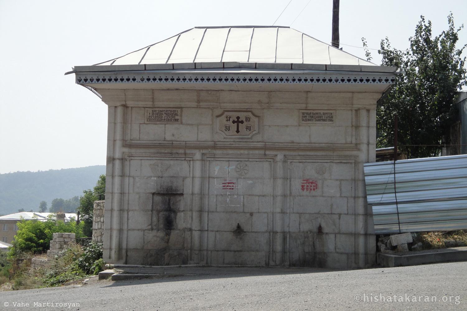 «Այս ջուրը բերուած է | ի յիշատակ պատվարժան | քաղաքացի Թադէոս | Թամիրէանցի։ Ք(աղաք) Շուշի 1900»