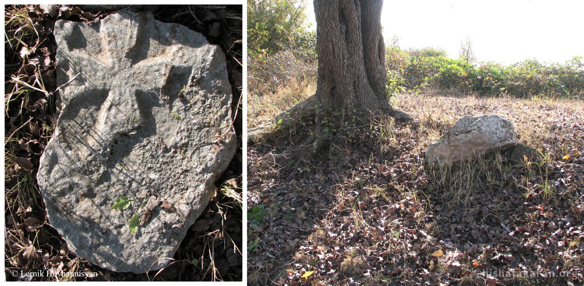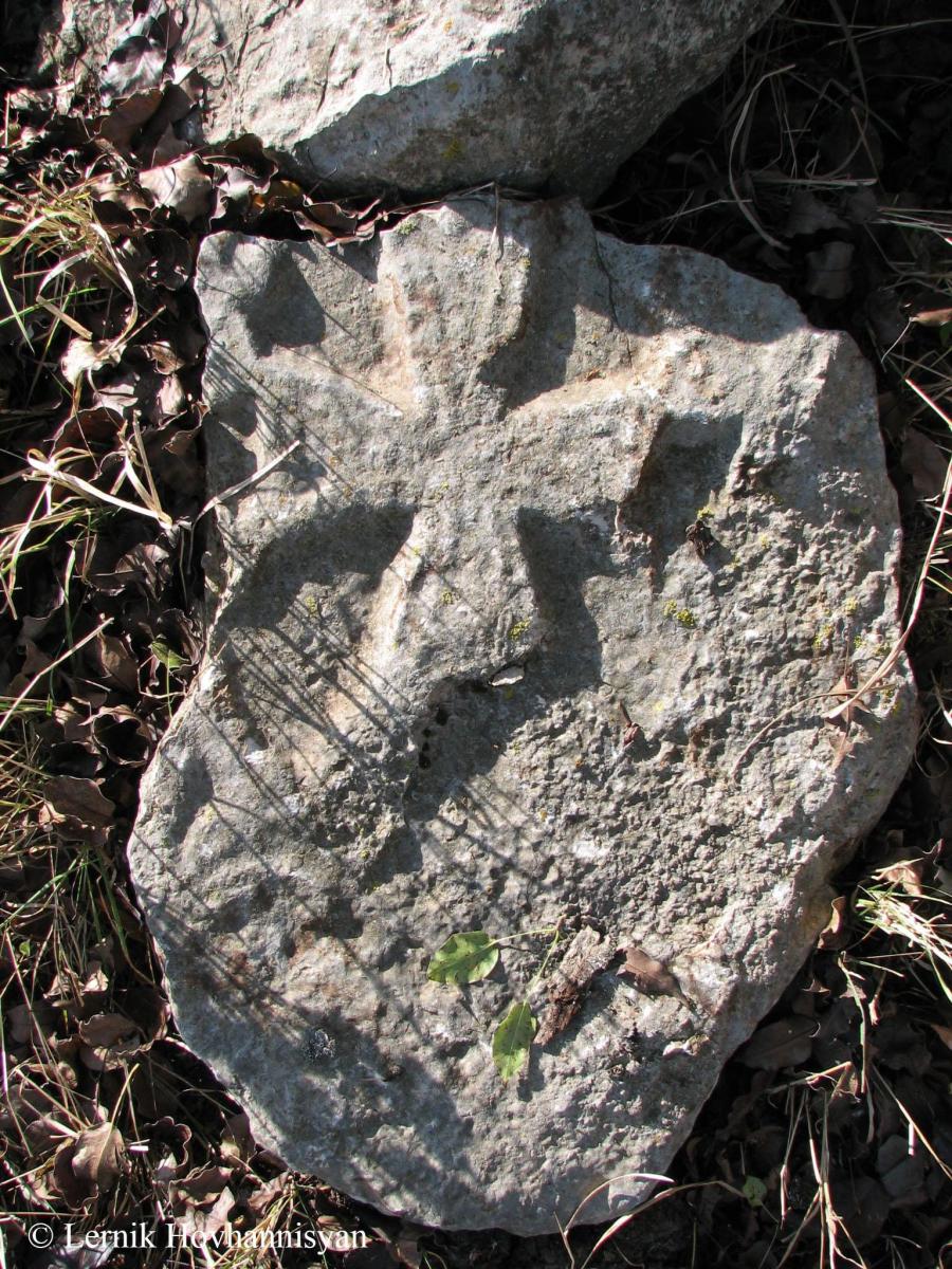 Belongs to the medieval cemetery known as “Khach” (Karmir Avetaran / Red Gospel) of the Karmir Qerts settlement. The name of conservation unit