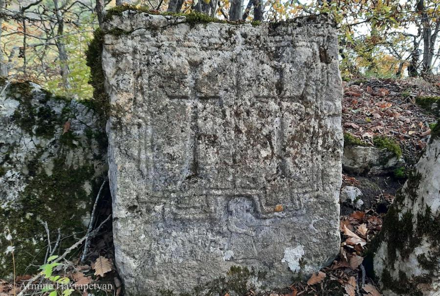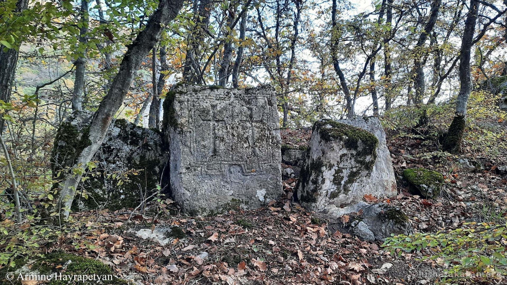Karmir gyugh (Dṛnavarz), cemetery of Aghin Nahatak monastery, Khachkar № 1