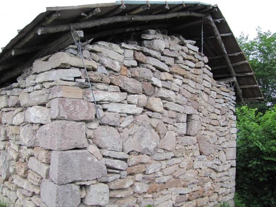 The walls are constructed from local stones and lime mortar, with an irregular layout. Only the corners and the entrance frame are made of either fully or partially carved stone. Finishing and decoration