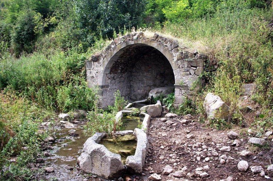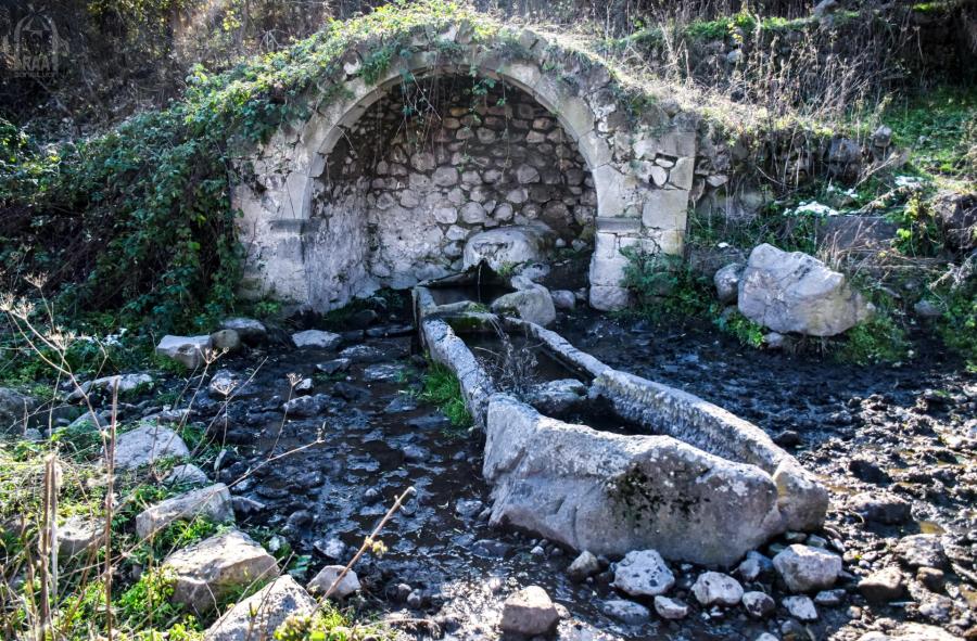 The village of [Ghushchʻi] is located in the Aghahechk [Aghahechʻkʻ ]province of historical Syunik. It has been mentioned since the 13th century. Unfortunately, most of the historical and cultural heritage of this monument-rich village has been destroyed by foreigners who settled here. Two vaulted stone fountains have been preserved on the territory of the settlement.The three basins of the village fountain, with a total length of 5.7 meters, were built at least in the 13th century, on top of which the current vaulted structure was erected at the end of the Middle Ages. The latter, having been rebuilt and repaired at different times, continues to function without interruption until today. It is known that the Armenian population of the village was displaced and Kurds settled in the village. In the 19th century, the vaulted building of the spring became dilapidated. In 1895, by order of the local Muslim population, Armenian craftsmen1 repaired the spring and left the following inscription in Armenian and Arabic on the left edge of the spring: «Հիջրի 1312 (1895)|1895 թիւ| տերը Քարբալայի Շախրդի (?)»2.